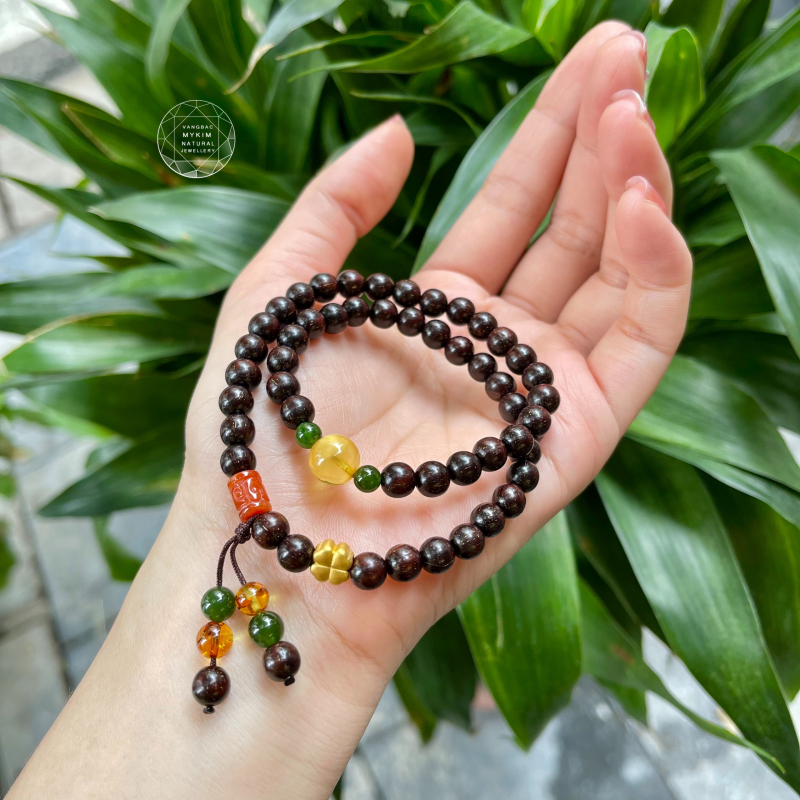 Một chiếc vòng tay tử đàn truyền thống thường gồm 108 hạt – con số thiêng liêng trong Phật giáo, biểu tượng cho 108 phiền não cần buông bỏ để tâm hồn nhẹ nhàng, trong sáng hơn. Mỗi hạt gỗ không chỉ là một điểm chấm nhỏ trên hành trình sống mà còn là lời nhắc nhở để chúng ta hướng về sự tĩnh lặng và trí tuệ. 🕉️🙏