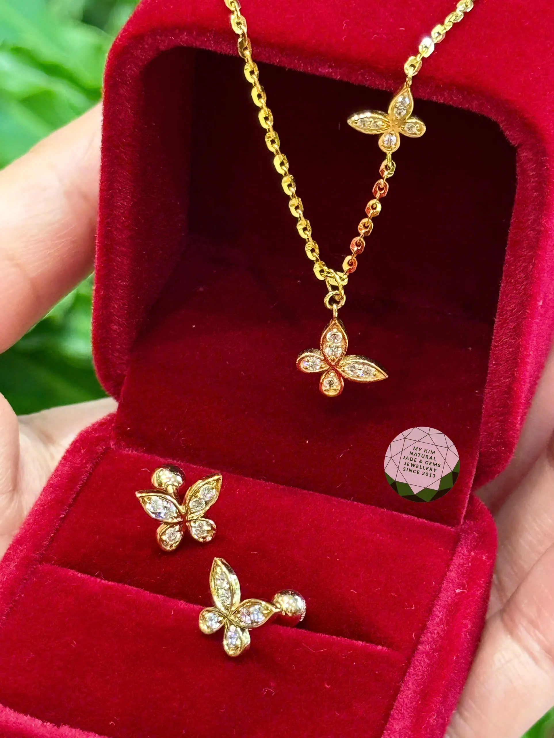 Lấy cảm hứng từ Hồ Điệp – loài bướm tượng trưng cho sự tự do và tinh khôi, set trang sức này được chế tác từ vàng 10K, điểm xuyết đá sáng nhỏ tỉ mỉ.
