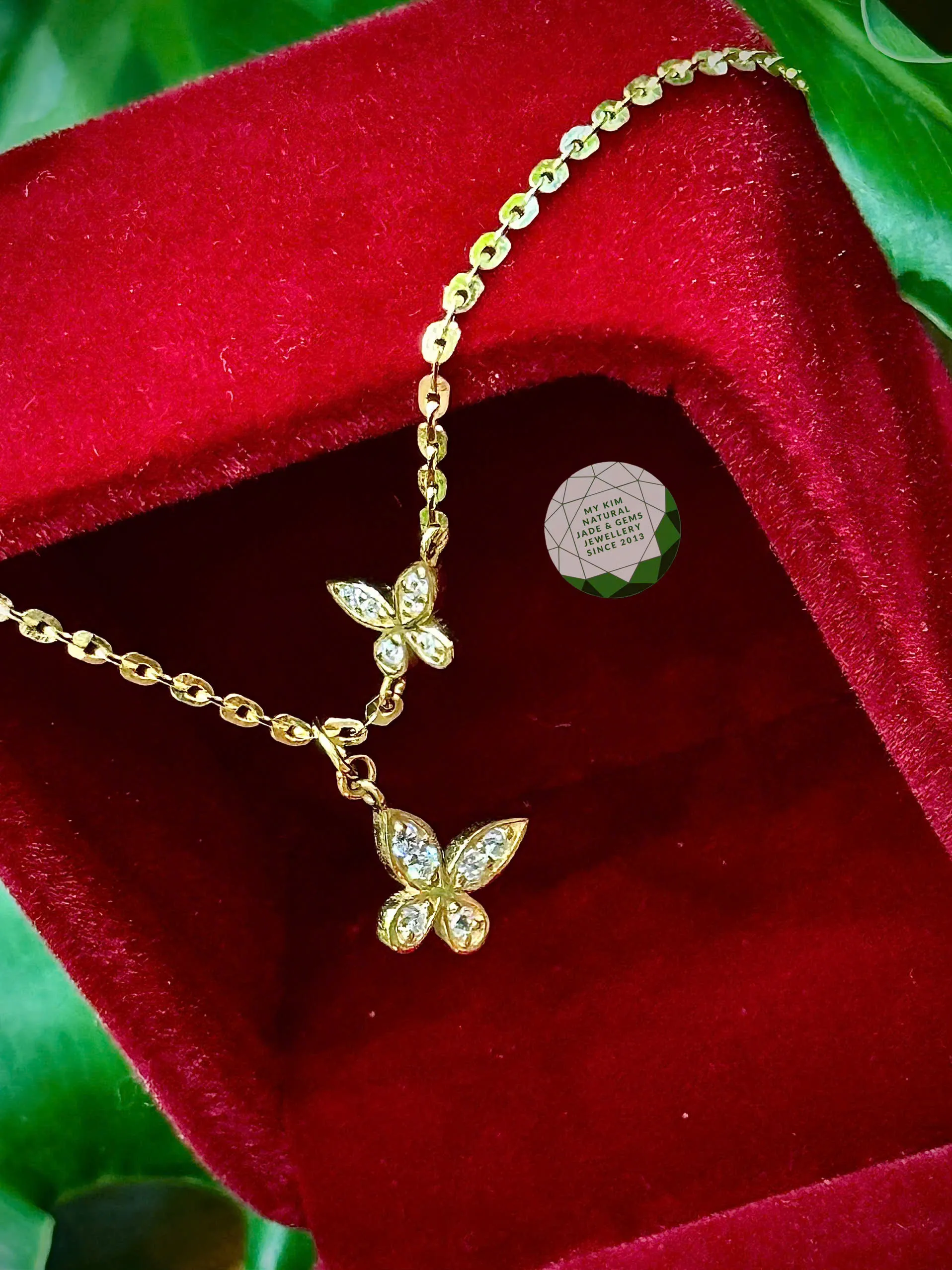 • Thiết kế: Bộ gồm bông tai và lắc chân đồng điệu hình Hồ Điệp